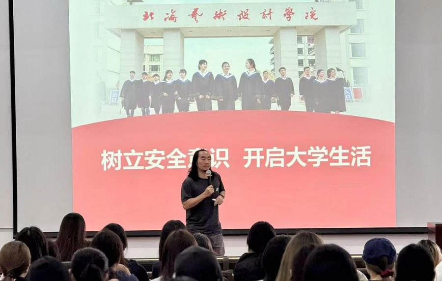 学院学工办主任谢鹏主讲了《大学生安全意识教育及学生手册》,引导 学生筑牢安全防线、紧绷纪律之弦,将规章制度内化于心、外化于行。