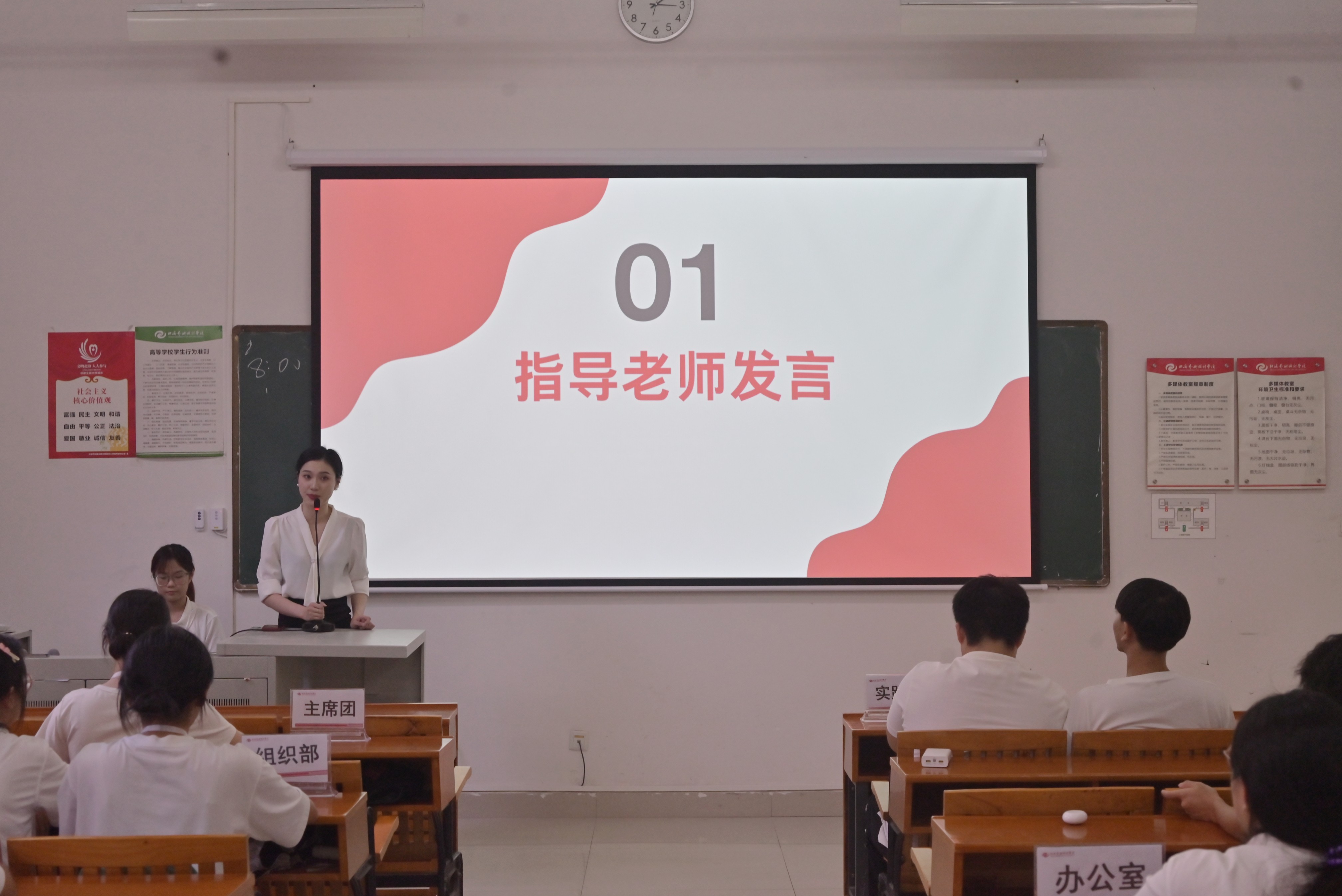 会议第三项议程,由主席团及各部门代表发言。主席团、办公室、组织部、文体部、宣传部、实践部代表依次登台,介绍部门核心工作与人员构成,助力成员快速明晰部门职能与岗位方向,进而提升个人能力、凝聚青年力量、优化团组织运作效率,为后续工作筑牢基础。