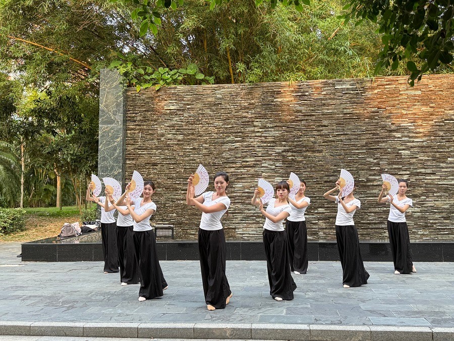 活动在独具民族特色的瑶族舞蹈表演中拉开帷幕,同学们以饱满的热情、灵动的舞姿,为现场观众献上了精心编排的节目赢得观众的阵阵掌声与喝彩,现场洋溢着欢乐和谐的氛围同学们用肢体语言传递艺术之美,更用真诚的笑容拉近了与社区居民的距离。