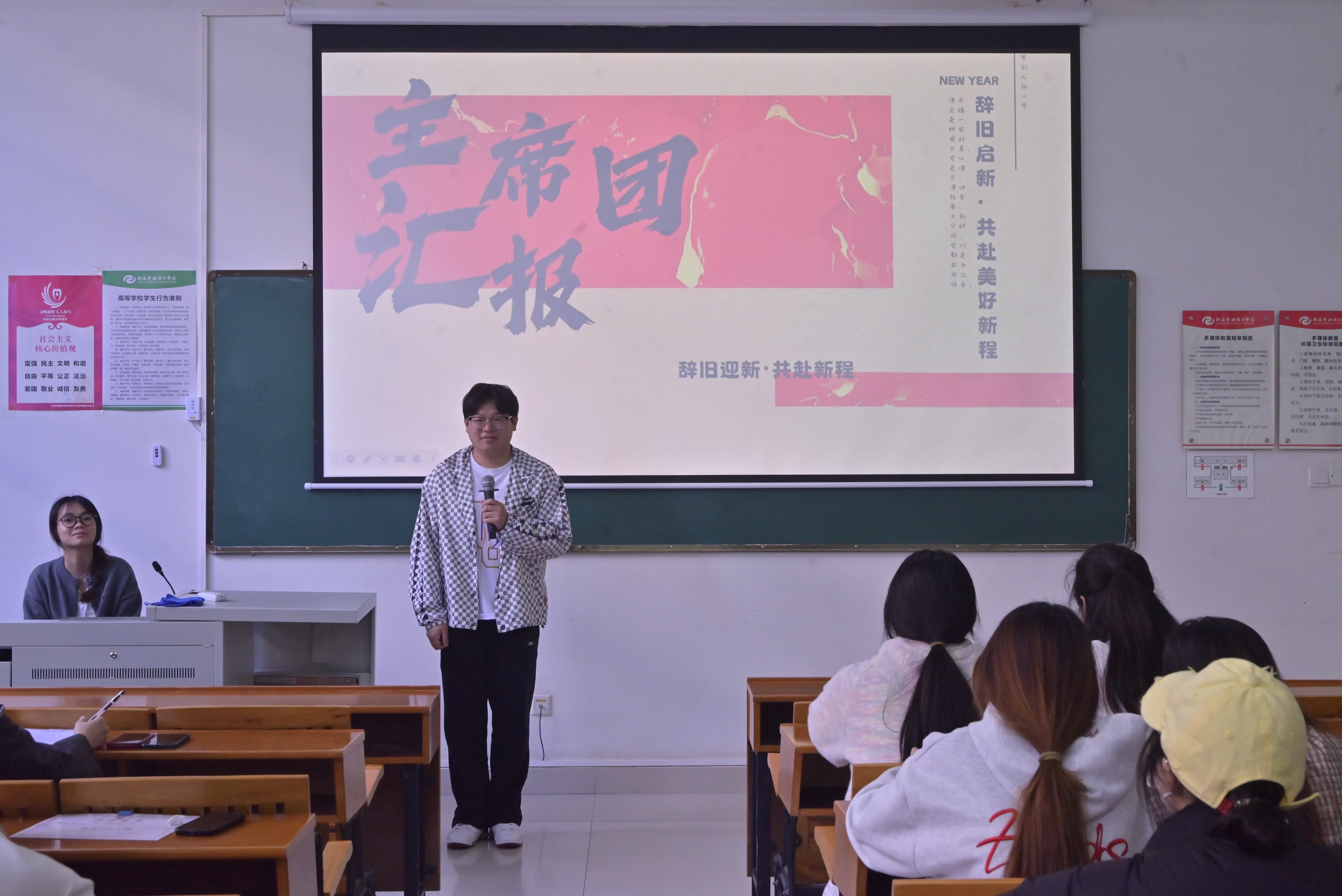 会议伊始,由各部门负责人对本部门工作进行总结汇报,主要汇报各部门的工作亮点、成果、遇到的困难与解决方案以及下学期的工作计划。随后由团总支主席缪仁文进行工作总结。