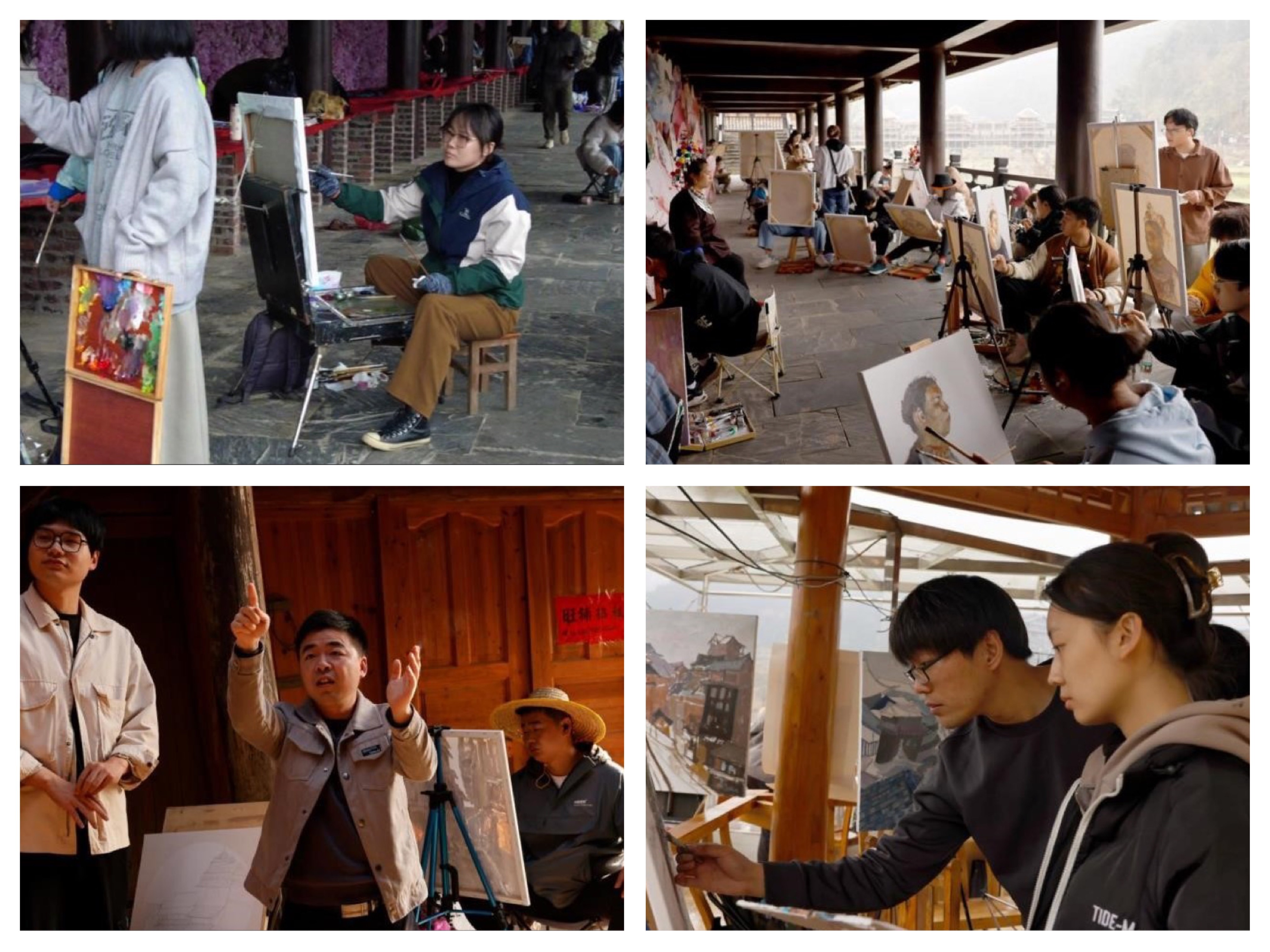此次写生有曲湘建教授、刘斌教授、王少军教授、崔君旺教授、王跃奎教授、龙义敏教授、张云杰教授、龚为教授等教师为学生现场示范指导。