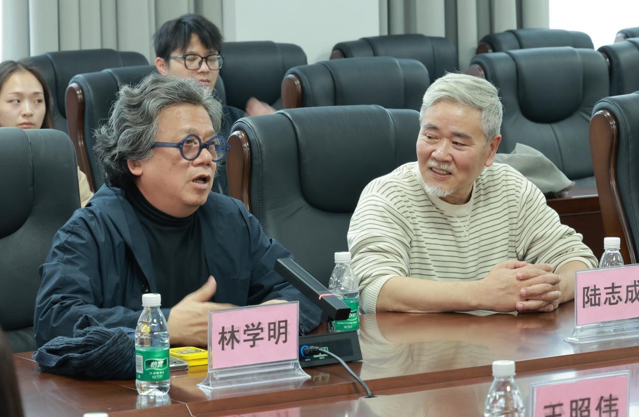 随后,林学明教授分享了他在教学和实践中的经验与思考。他强调产教融合大美术、大设计态度的重要性,探索实践教学与环境艺术专业的作用关系。他讲述了自己在进入中央工艺美术学院学习陶瓷之前从事了五年木工、三年玉雕的工作,这些丰富的实践经验为后期的学习打下了坚实的基础。他还提到设计不能回避商业,而室内、景观、建筑一体化统筹能力的专业人才才是适应发展需求的。