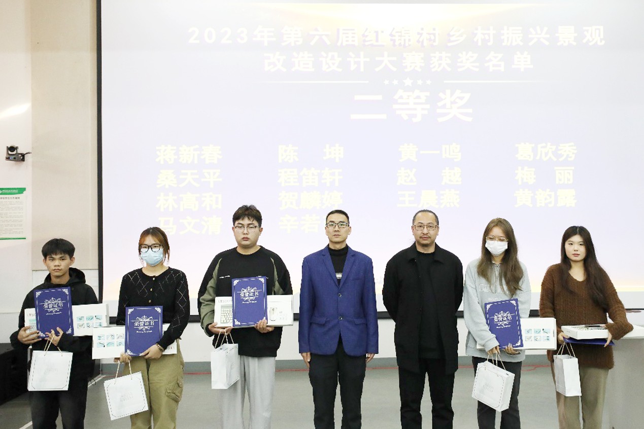 (红锦村乡村振兴景观改造设计大赛师生颁奖合影留念)