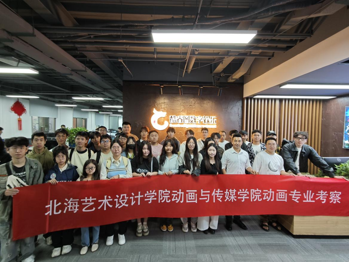 为增强动画与传媒学院学生的实践能力,提升动画专业应用型人才培养质量,推进校企合作关系,拓展就业渠道和岗位,9月20日上午,北海艺术设计学院动画与传媒学院2021级动画专业学生在我院孙永辉院长、北京实践基地办公室主任陈晨,专业老师胡俊、曹雪梅、王祎的带领下,前往酷睿图数字娱乐科技有限公司进行参观调研与学习交流,酷睿图数字娱乐科技有限公司总经理赵伟热情接待我校考察团。