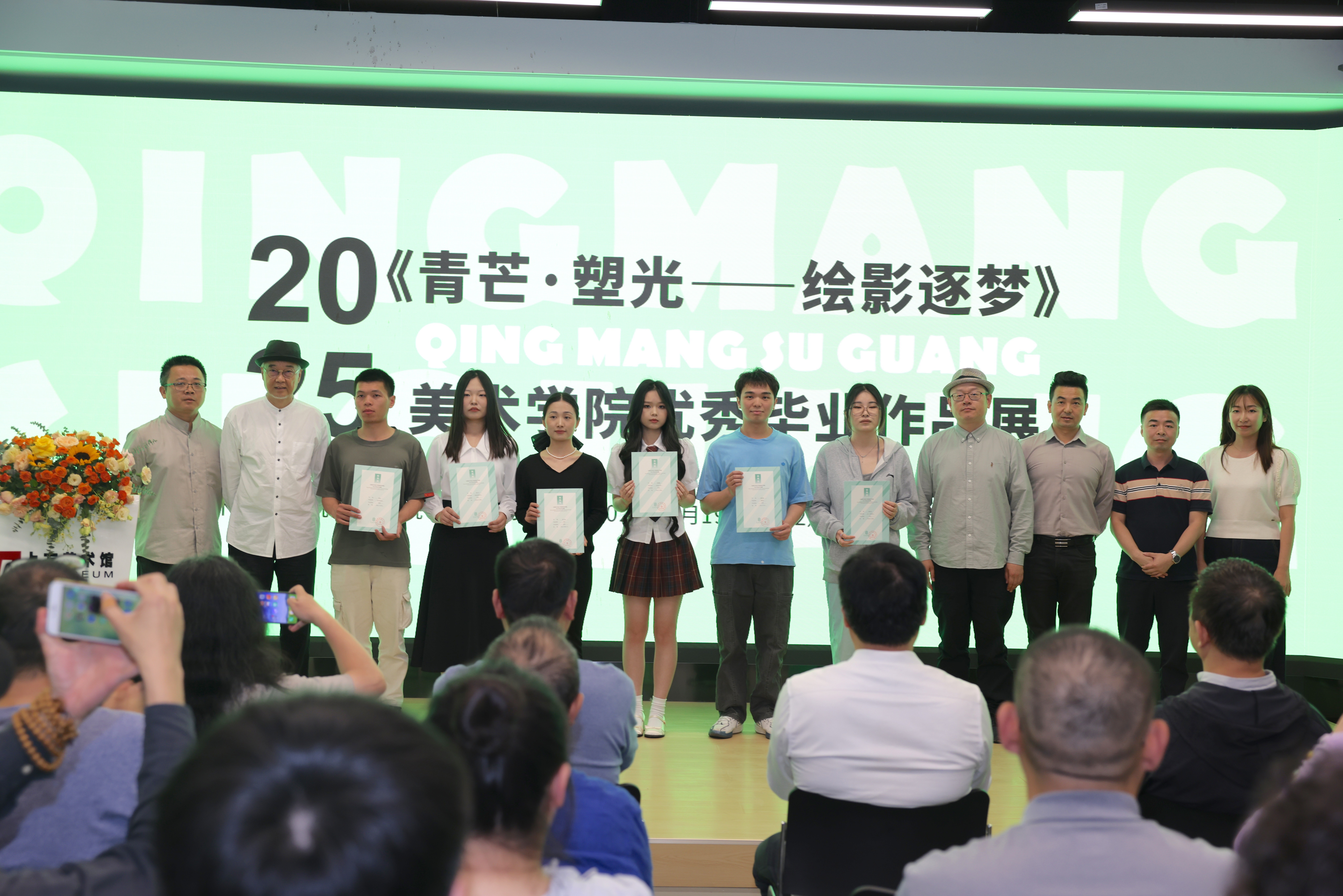 随后,学生代表分享了创作历程,表达了对母校培育的感恩之情。开幕式现场,学校领导为本次展览获得优秀奖的学生颁发获奖证书。