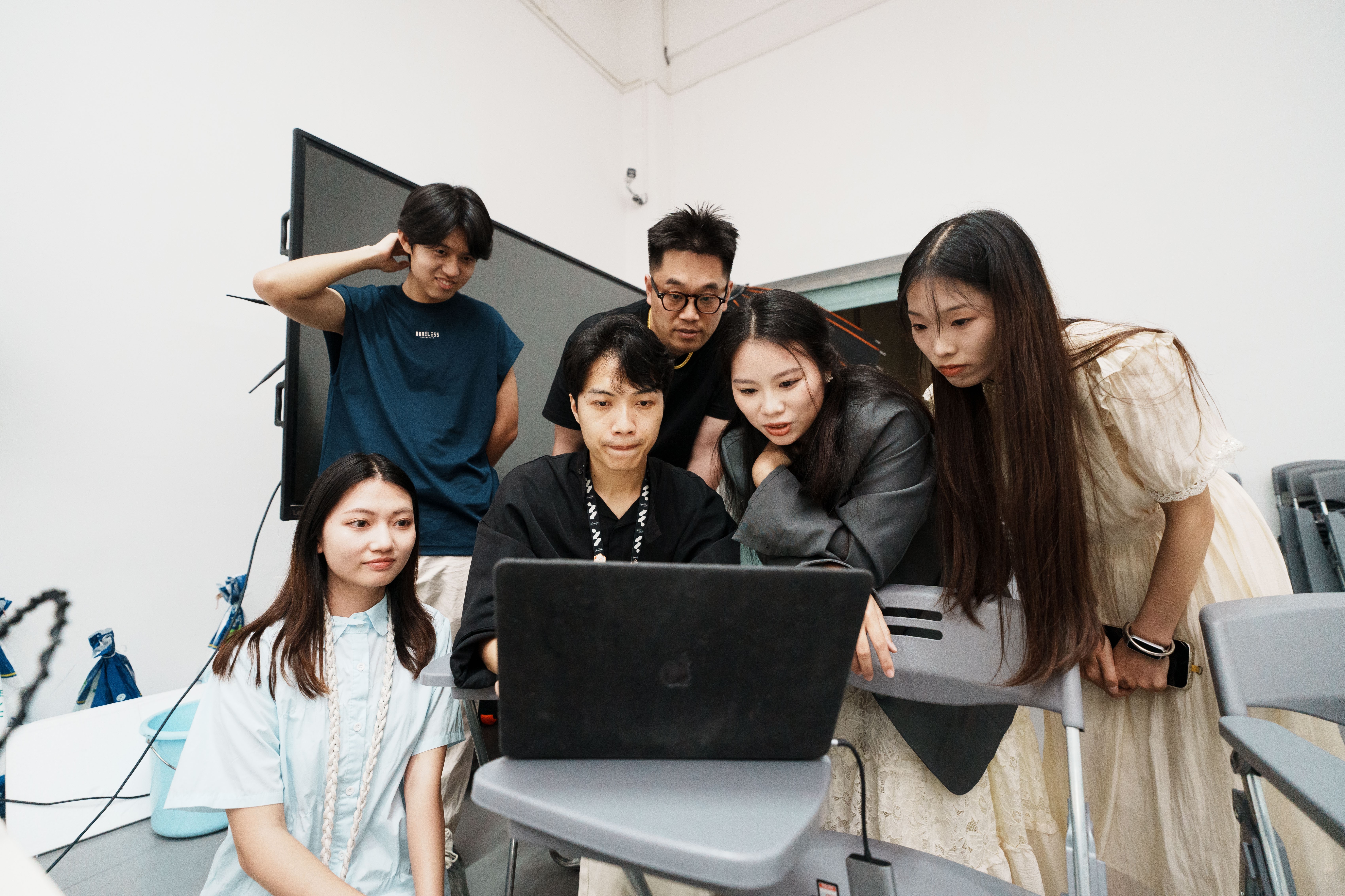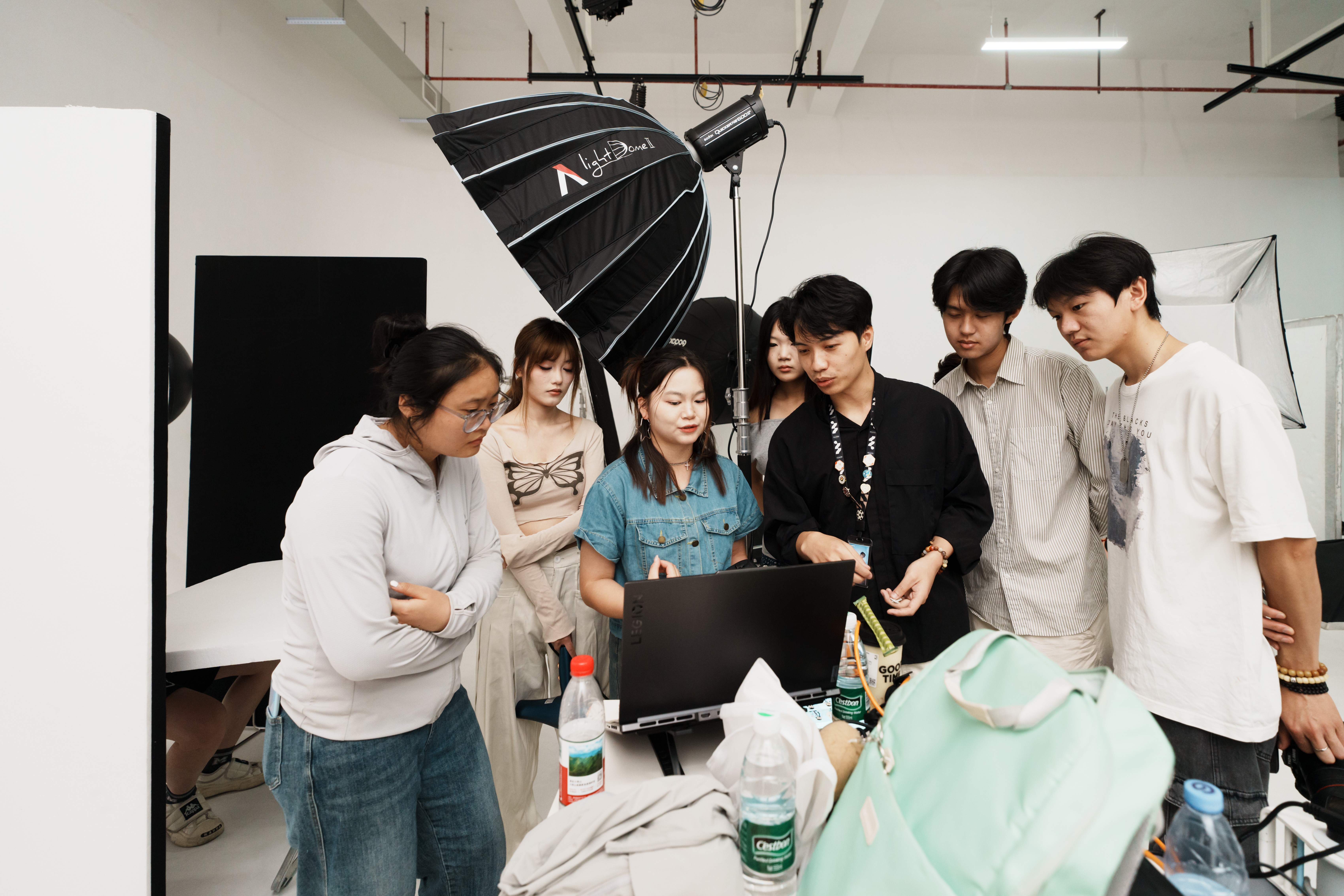 学生分组拍摄过程
