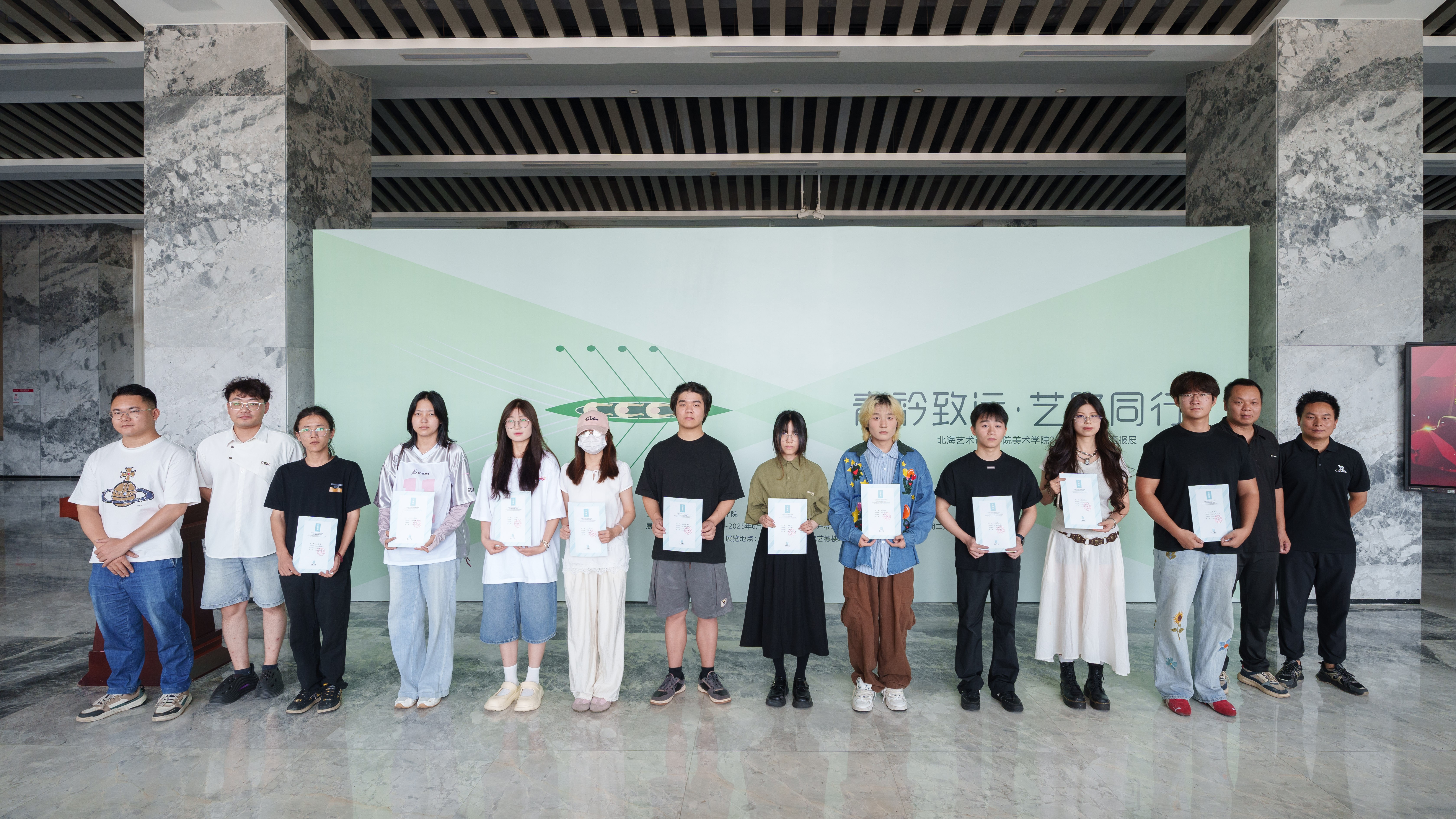 最后,由北海艺术设计学院党委书记覃宪儒,宣布“青衿致远艺路同行”教学成果汇报展开幕。