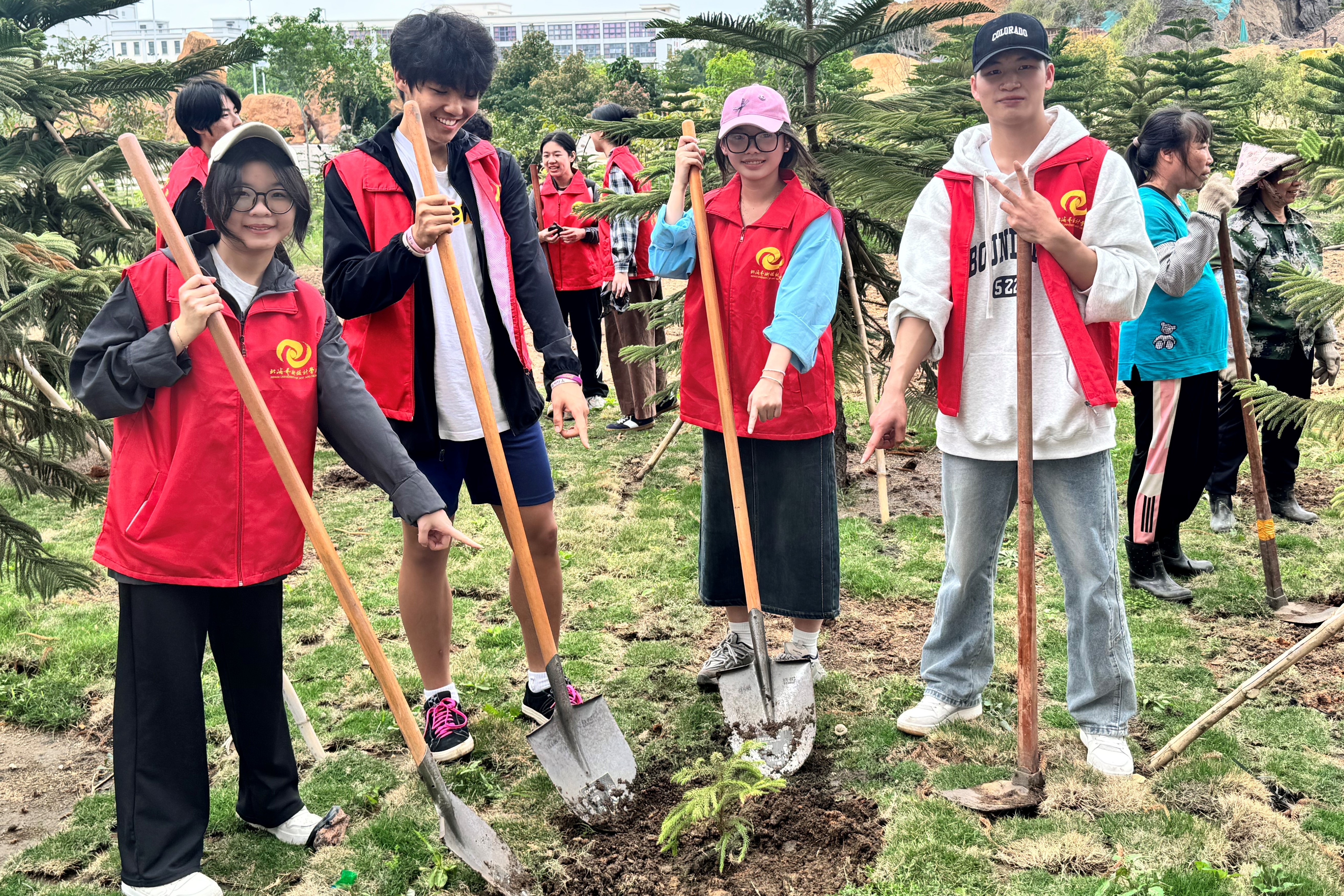 活动现场,师生将专业特色融入劳动实践同学们以锹代笔,以树为墨,以地为纸,将植树节的活动演绎得如同一幅生动的诗意画卷。他们不仅以笔墨书写着对自然的热爱,更以实际行动为校园的春天添上了一笔浓墨重彩。同学们纷纷表示,此次活动令同学们真切体会到铁画银钩不仅存在于宣纸上,更能在青山绿水间延展。体验劳动植树造林乐趣的同时生态环境保护的重要性。