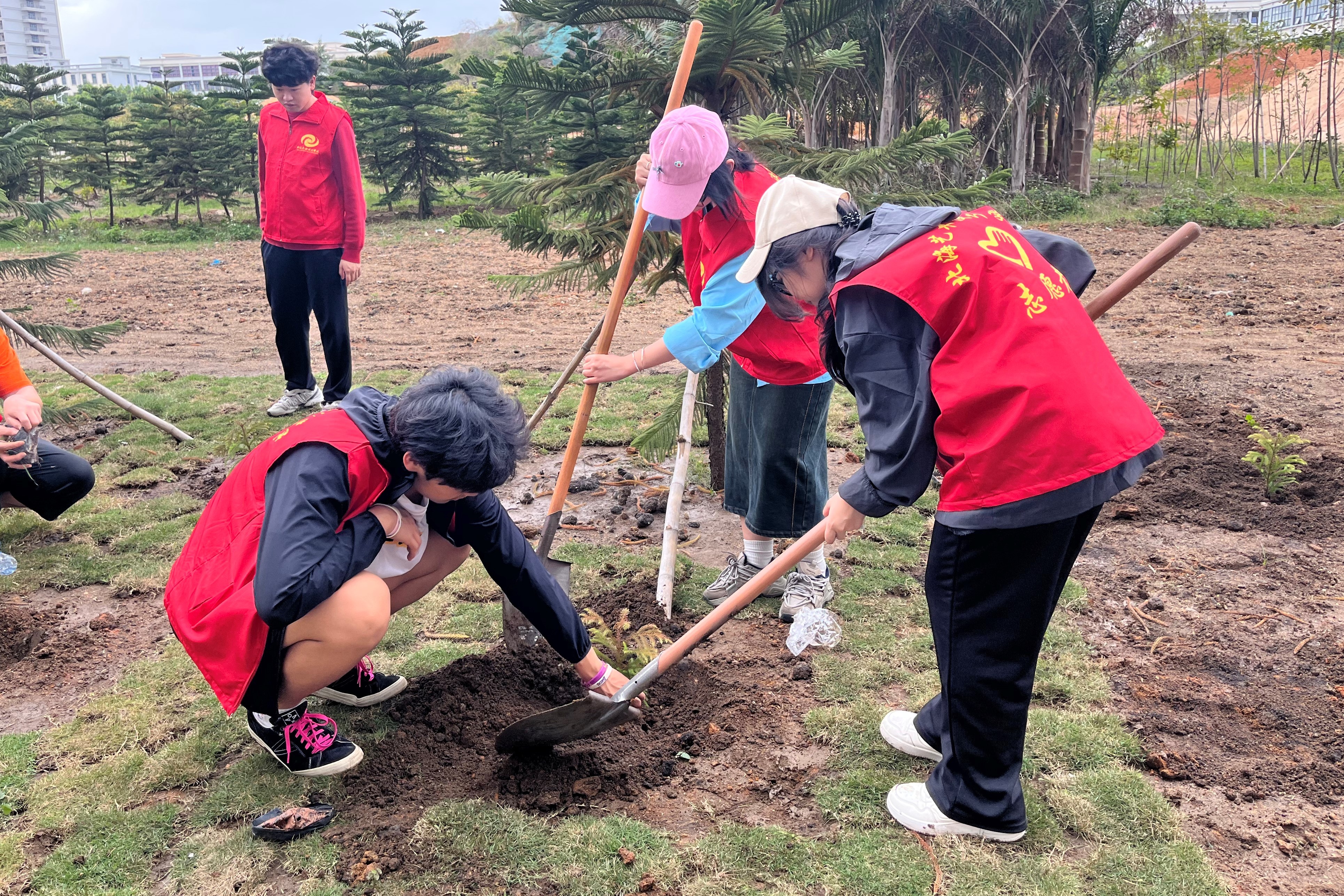 三月春风暖,植树正当时。在第46个植树节来临之际,书法学院分团委于3月11日下午组织学生骨干王应祖、林清瑜、齐子旭、谢春喜等赴南校区开展校园植树活动为校园增添一抹新绿,也用实际行动践行“绿水青山就是金山银山”的生态理念。