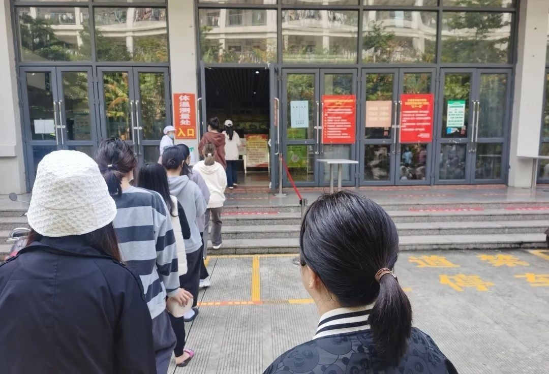 目前,食堂严格按照校园疫情防控要求,在食堂开放入口处均安排有工作人员对每一位入堂者进行体温测量,严格排队间距一米以上,严禁堂食,杜绝病毒交叉感染,同时强化全体食堂工作人员卫生防护意识,确保广大师生校园用餐的安全。