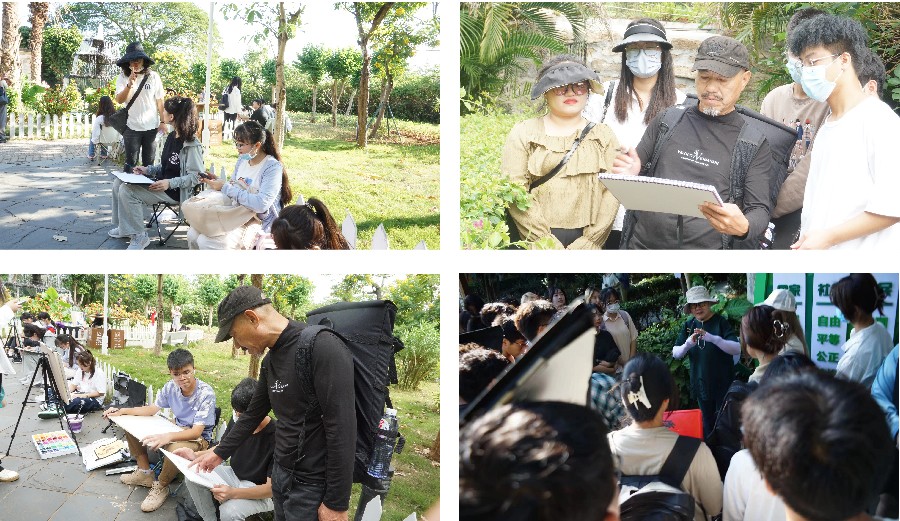 11月4日至6日各教授和任课教师深入写生教学实践活动,对写生场景进行讲解,为学生作范画示范,并认真给予学生指导意见。