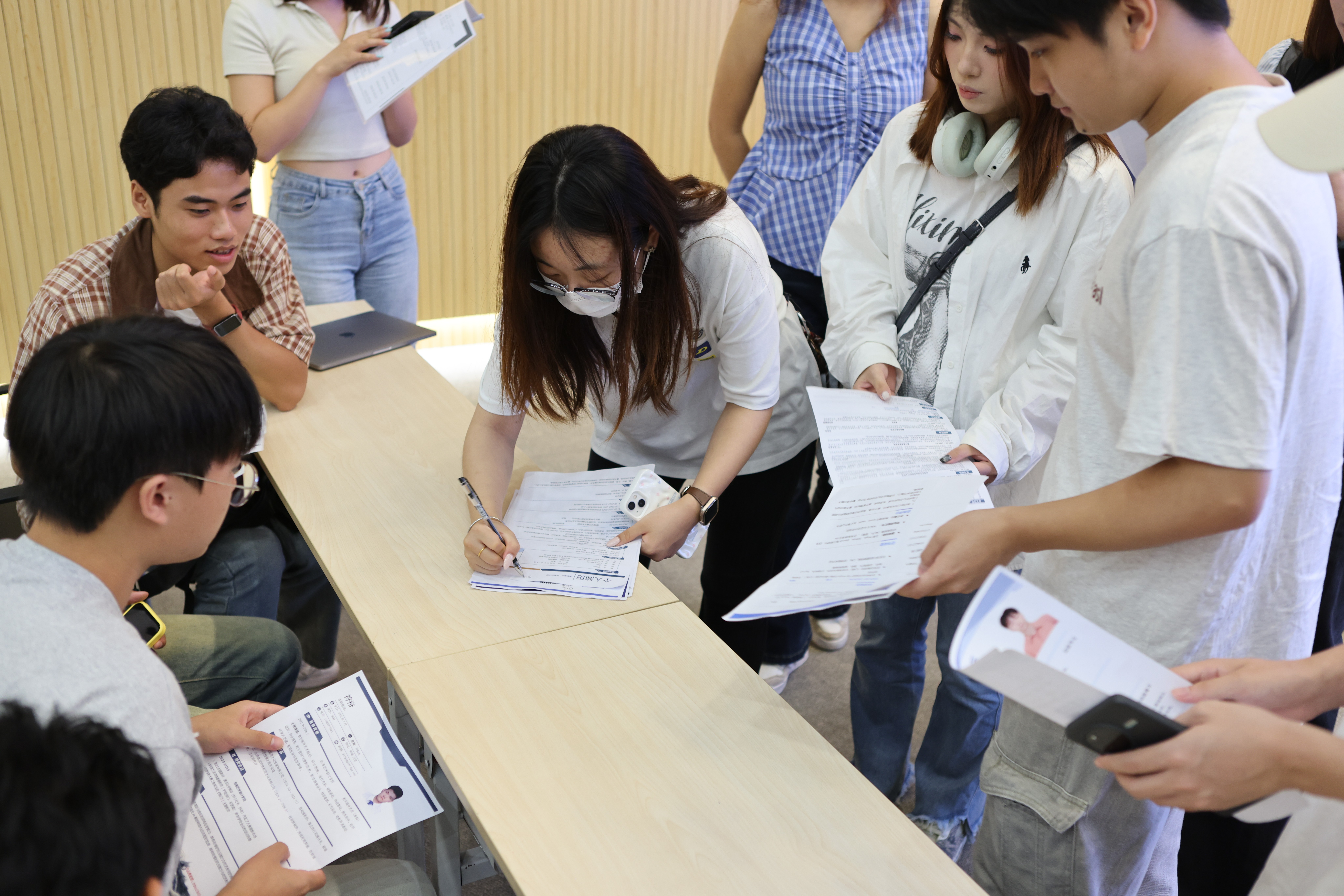 接下来的简历提交环节,同学们积极踊跃地向企业人力资源部门递交了精心准备的简历和作品集。现场简历收集工作有序进行,网易HR团队专门每位提交简历的同学进行了登记,并建立了专门的求职人才库。这种直接投递的方式为学生们搭建了高效的求职通道,获得了同学们的热烈响应。