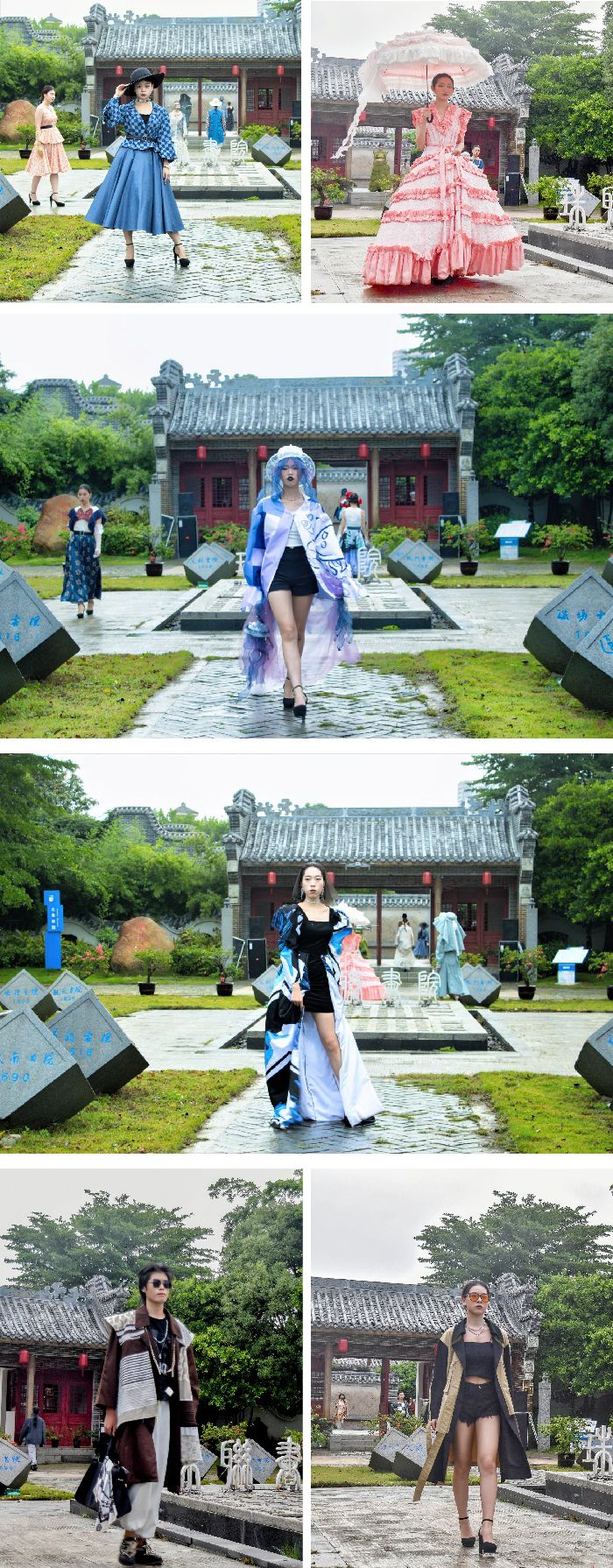 随着音乐的转换,时尚潮流与传统文化发生碰撞,学生作品打破常规、无拘无束,体现了国潮的时尚态度、海洋的多元奔放、疍家的传统文化和少数民族的别样风情,给北海市园博园增添了特殊的一抹景色。