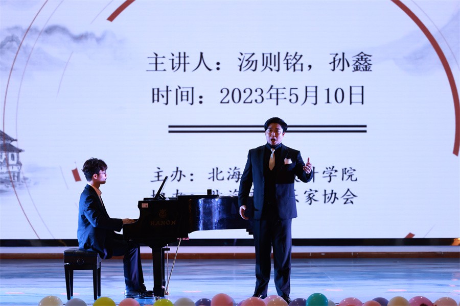 近日,广西艺术学院孙鑫教授与汤则铭教授受邀莅临我校,为我校师生带来一场中国声乐作品音乐会。音乐会由我校教师曲忠坤主持。