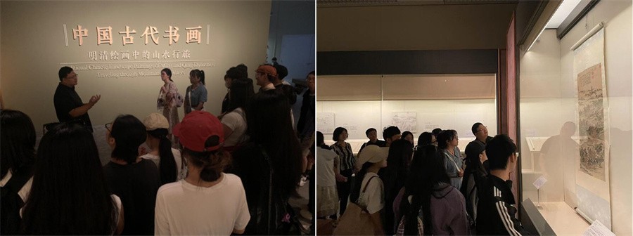集中考察活动中,同学们有序跟随中国国家博物馆的公益讲解员参观展览。中国国家博物馆罗翔老师为我校师生重点介绍了馆内最新的展览“中国古代书画——明清绘画中的山水行旅”,展览作品以祖国各地河山为创作内容展开,透过古人画笔的描绘和专业人员的详细讲解,同学们切身体会中国古代书画的魅力,也更加深入地理解到古代书画的永恒与流变之美,感受中华艺术的源远流长与精彩深厚,进一步增强了民族自豪感和文化自信心,更加坚定了自觉为铸就社会主义文化新辉煌作出应有贡献的立场。