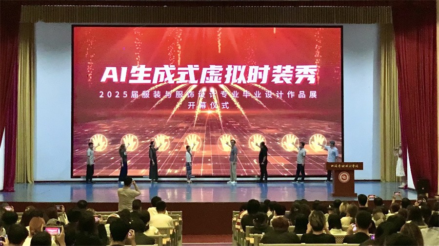 5月26日,服装学院“溯·AI生成式虚拟时装秀”暨2021级优秀毕业设计作品展在西区大礼堂拉开帷幕。校长卢新华,党委副书记陈毅华出席开幕式。校团委书记唐良春,质量监控办主任孙竹青,设计艺术学院院长李林平,建筑与环境艺术学院院长张春东,创新创业学院院长云曼,AI艺术学院院长顾伟光,服装学院党支部书记曹永攀、常务副院长廖汀等教师代表和学生参加开幕式。开幕式由AI虚拟时装秀指导教师陈琛主持。