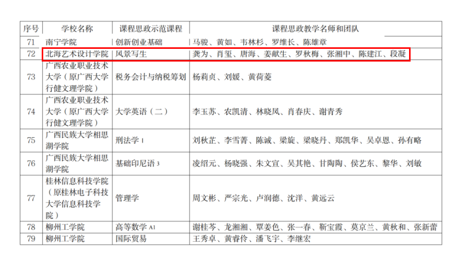 近日,自治区教育厅公布了2021年普通本科高校课程思政示范课程名单,我校美术学院《风景写生》被教育厅认定为2021年自治区级课程思政示范课程。龚为、肖玺、唐海、姜献生、罗秋梅、张湘中、陈建江、段凝老师获得自治区课程思政教学名师称号,并获思政教学团队称号。这是我校在自治区级课程思政建设上的新突破。