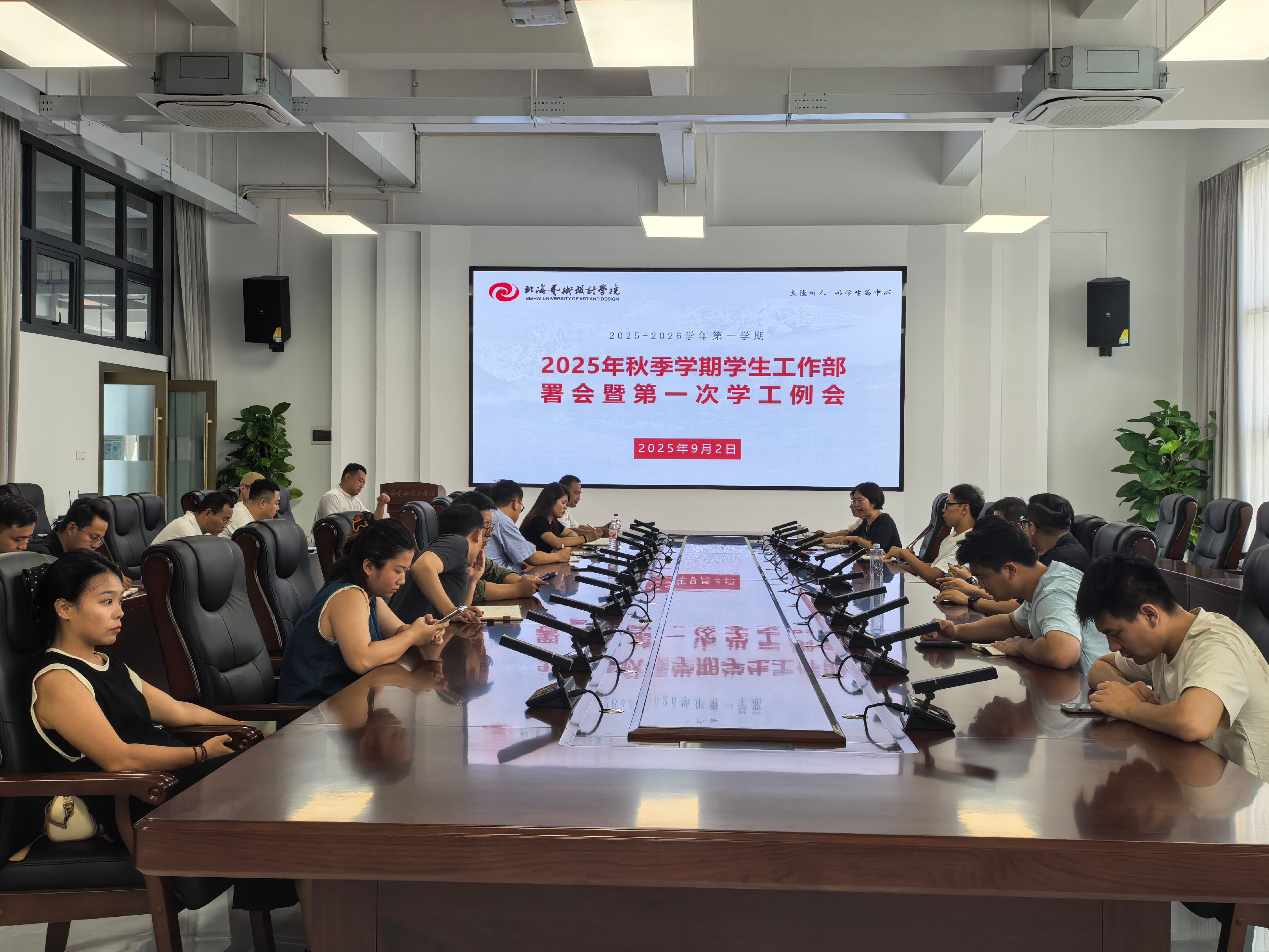 2025年9月2日,我校学生工作部(处)在南校区艺德楼8楼会议室召开2025年秋季学期学生工作部署会暨第一次学工例会。学工部(处)长班媚主持会议,各二级学院学生工作负责人及学工处副处长、各科室负责人参会。